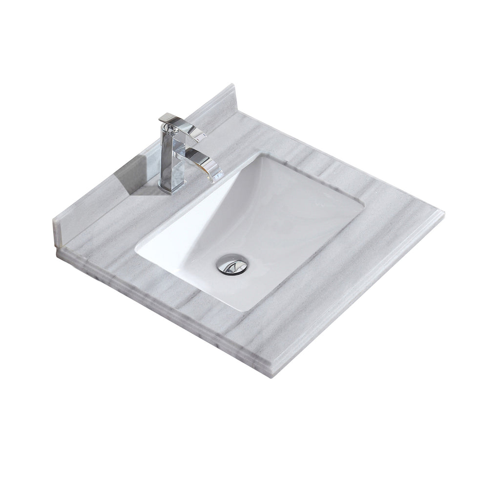 Laviva Forever 24" Single Hole White Stripes Marble Countertop with Rectangular Ceramic Sink 313SQ1H-24-WS