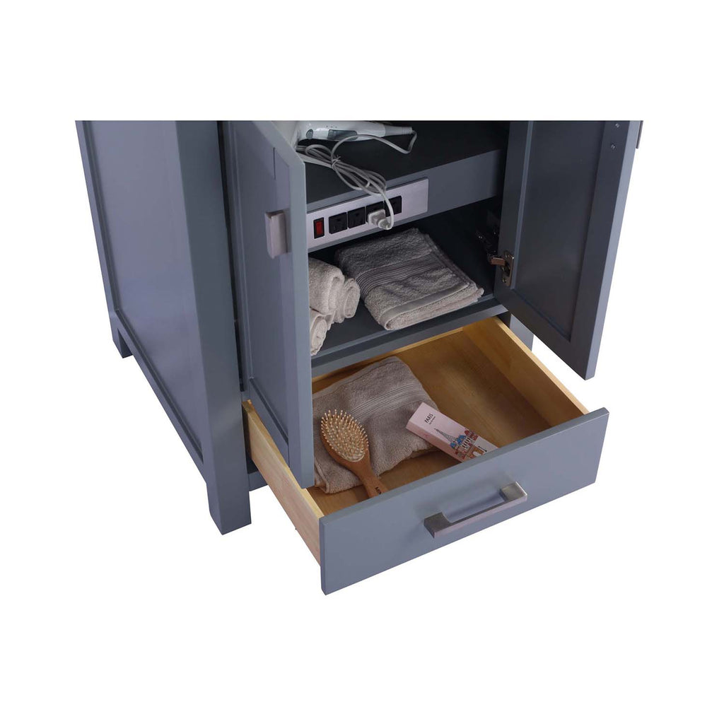 The Wilson Collection is a uniquely simple yet attractive collection. It features recessed panel doors with a shaker style design that is inset within the cabinet frame. The shaker style cabinets is inspired by the furniture designed by the Shakers, who were extremely skilled craftsmen and carpenters. Not sacrificing quality, the Wilson Collection is constructed with solid oak wood, includes high quality soft closing rails and hinges, and solid wood, dovetail construction drawers. Additionally, with functionality in mind, there are 4 electrical outlets inside the cabinet to keep all your electronics plugged in and ready to use. This collection offers a variety of colors and sizes to fit your bathroom.